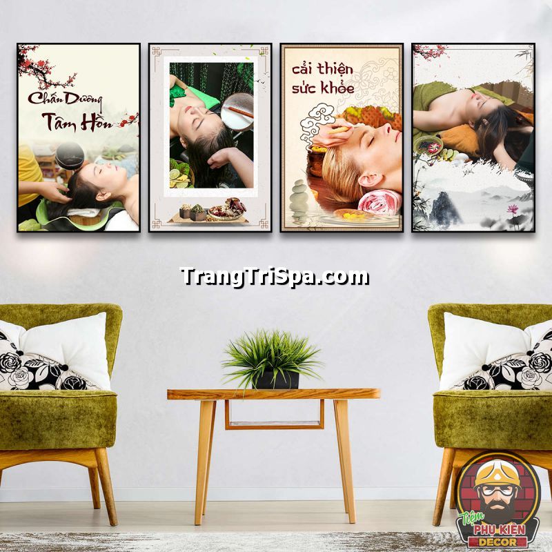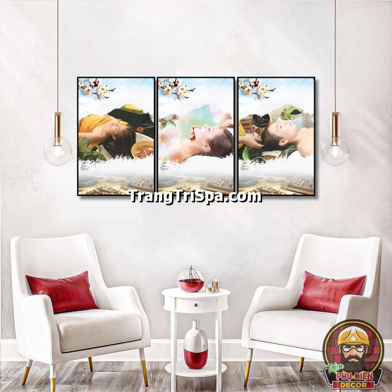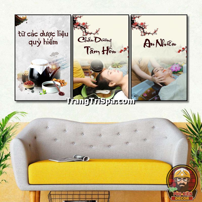 Tranh bộ trang trí tiệm gội đầu dưỡng sinh phong cách đương đại, tối giản