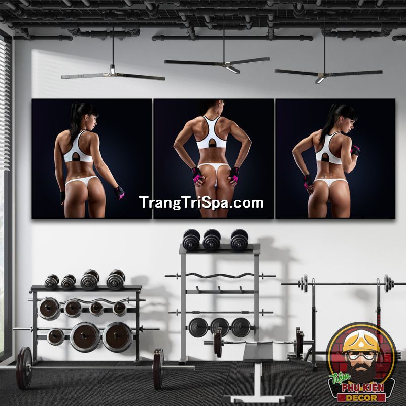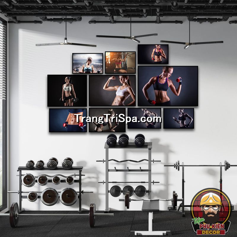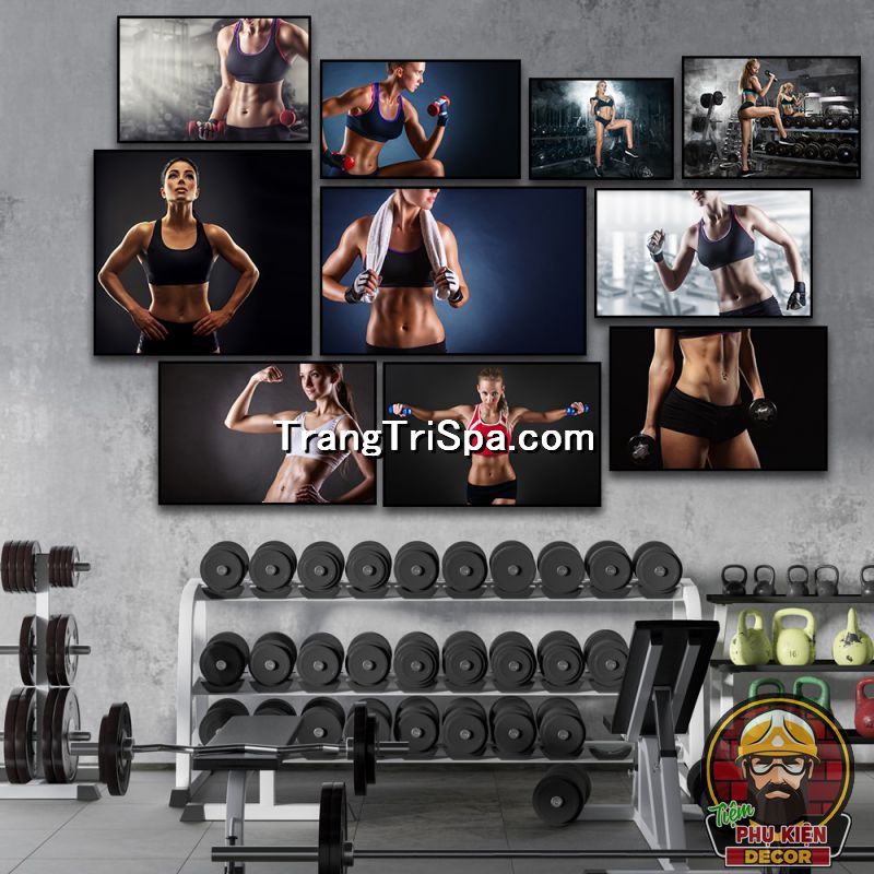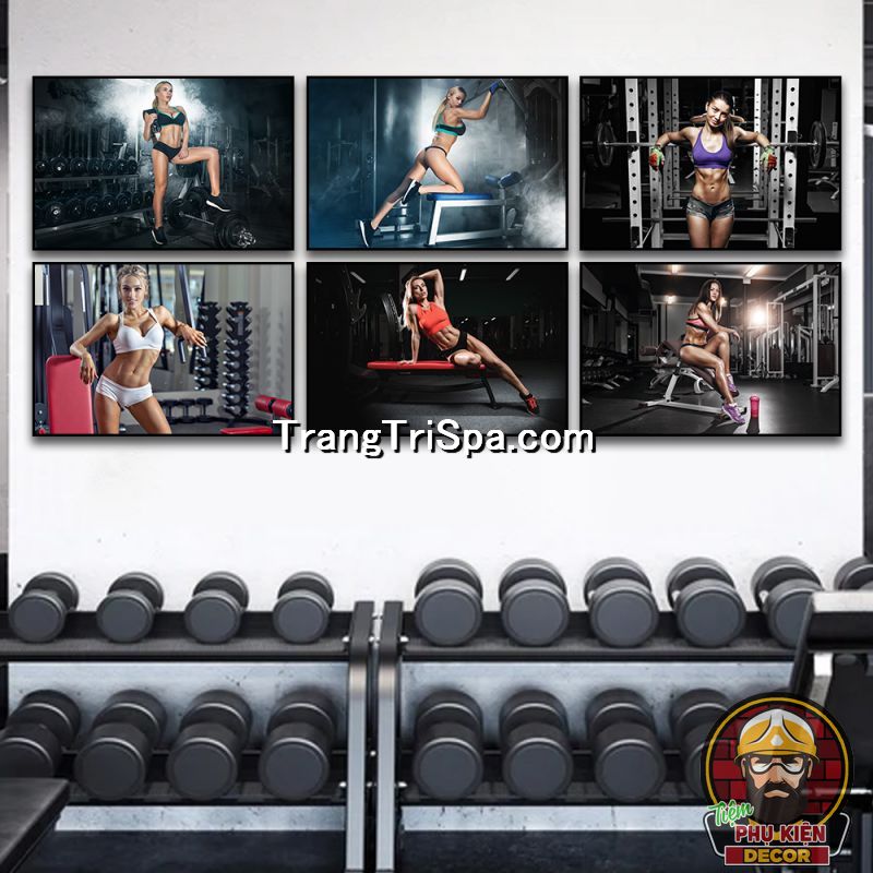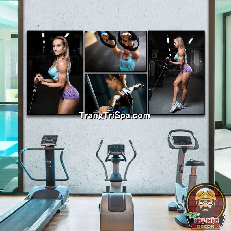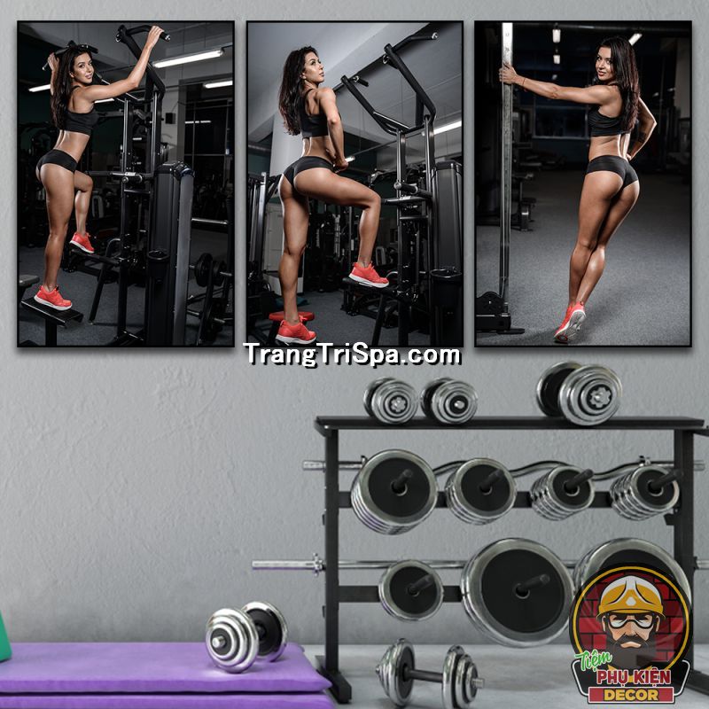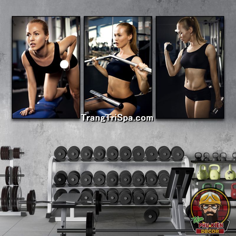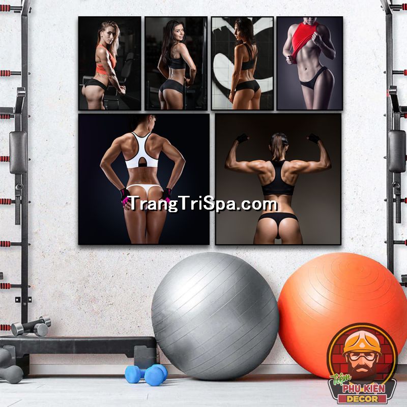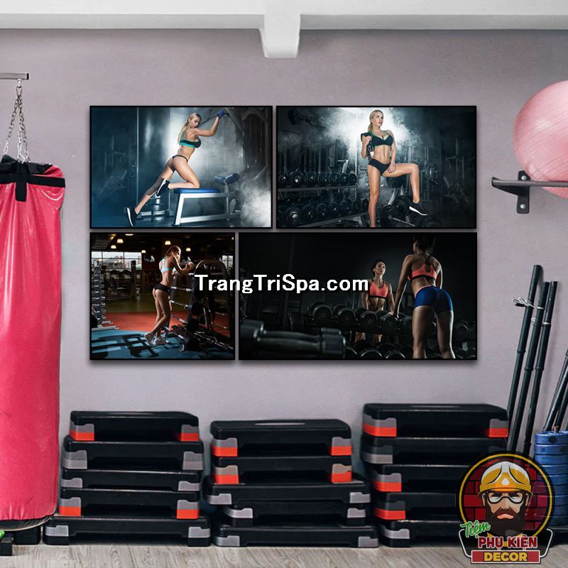Lựa chọn những mẫu tranh treo tường trang trí phòng Gym nữ với những hình ảnh các gymer tập luyện chăm chỉ mang ý nghĩ sẽ thu hút và kích thích động lực tập gym, thể hình để có 3 vòng săn chắc như các gymer.