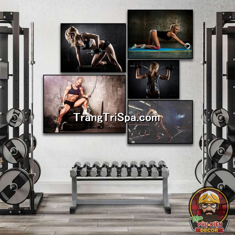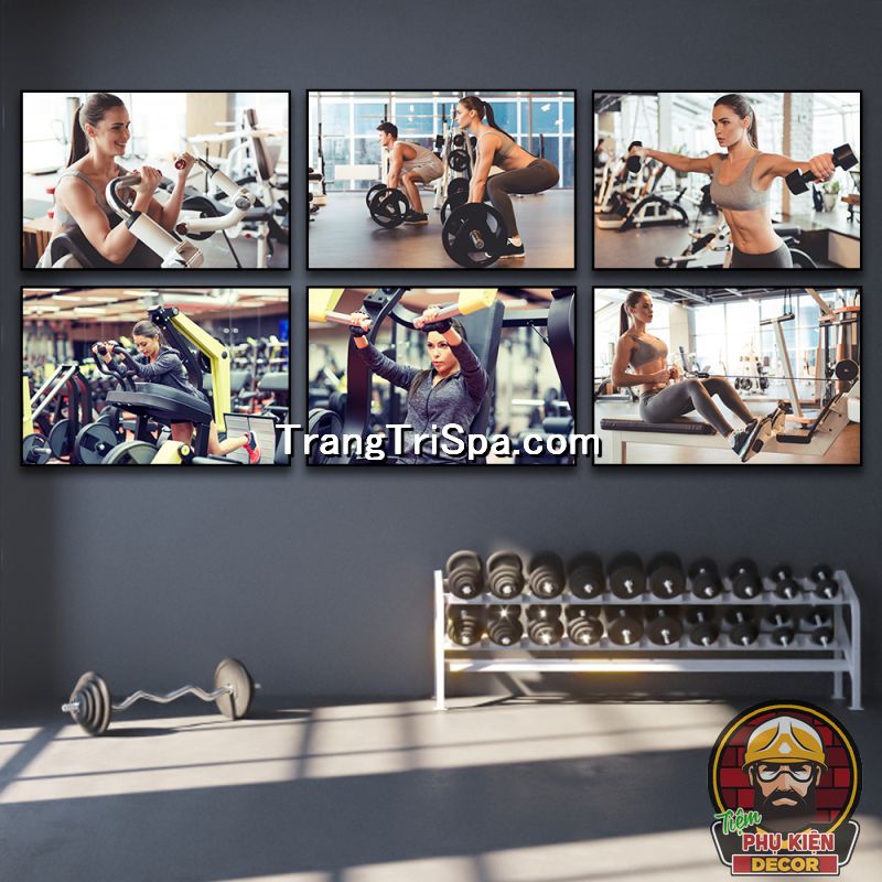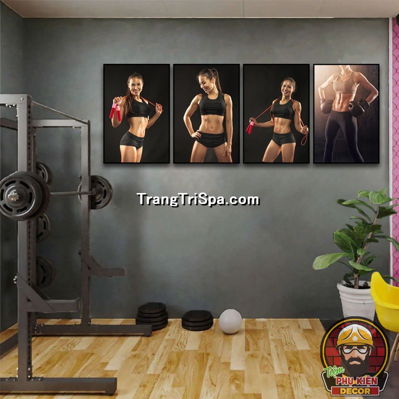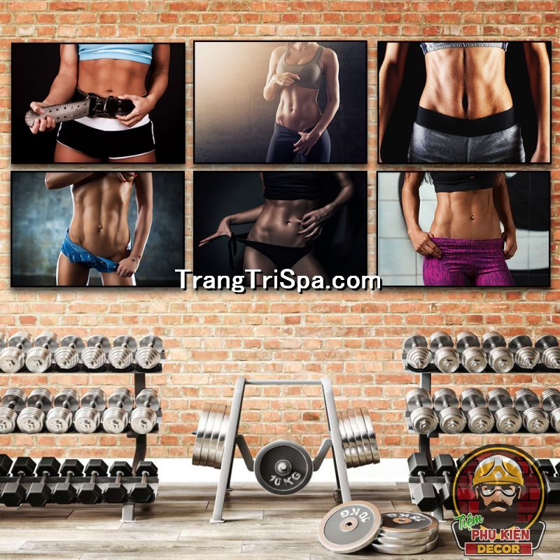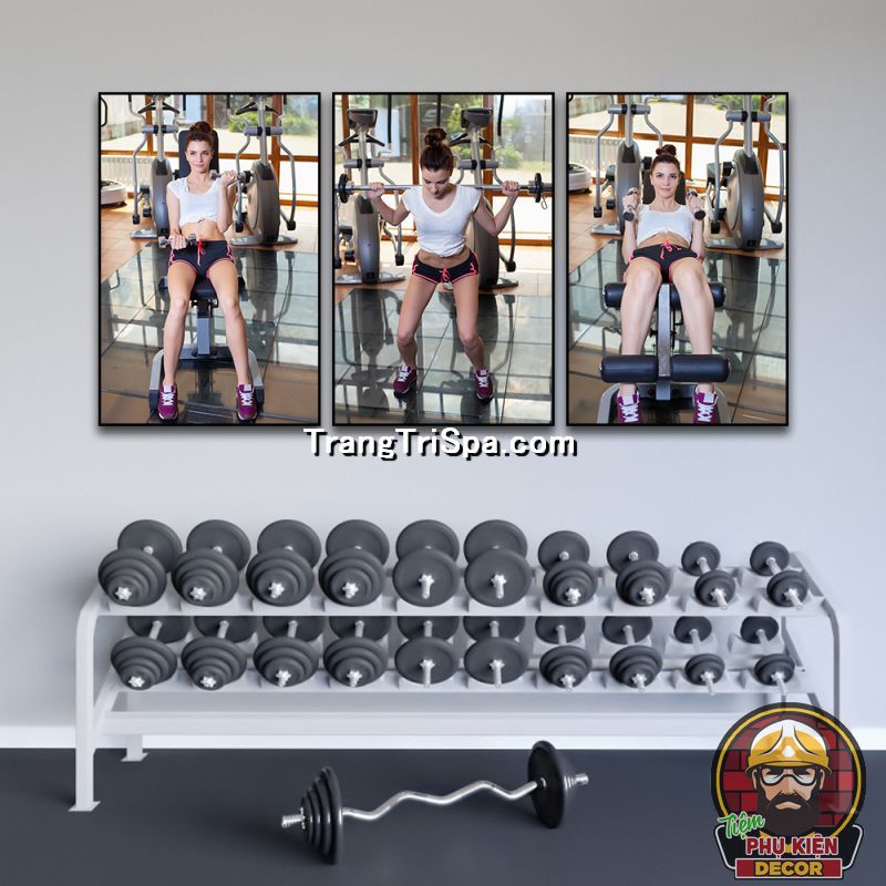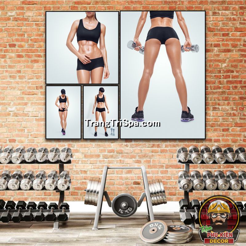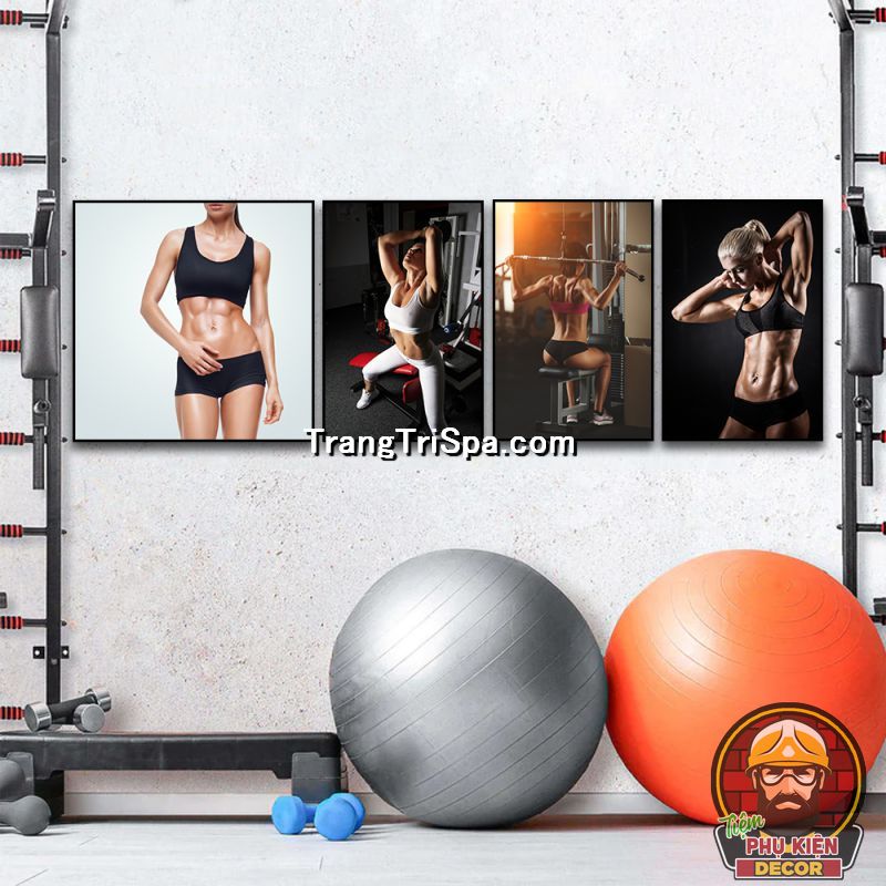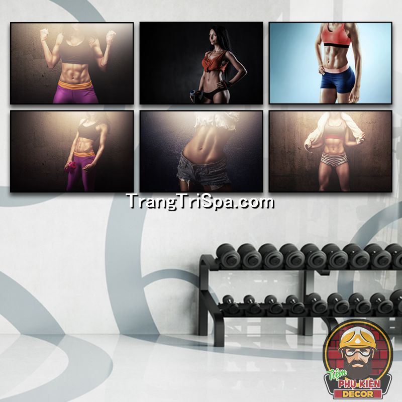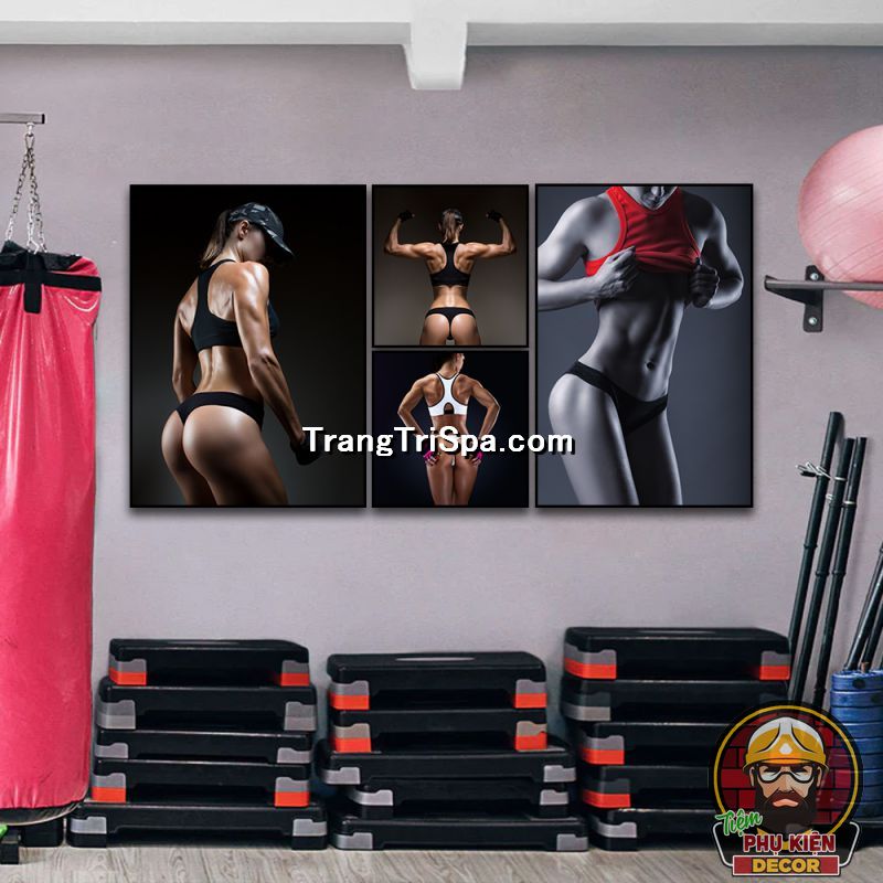 Lựa chọn những mẫu tranh treo tường trang trí phòng Gym nữ với những hình ảnh các gymer tập luyện chăm chỉ mang ý nghĩ sẽ thu hút và kích thích động lực tập gym, thể hình để có 3 vòng săn chắc như các gymer.