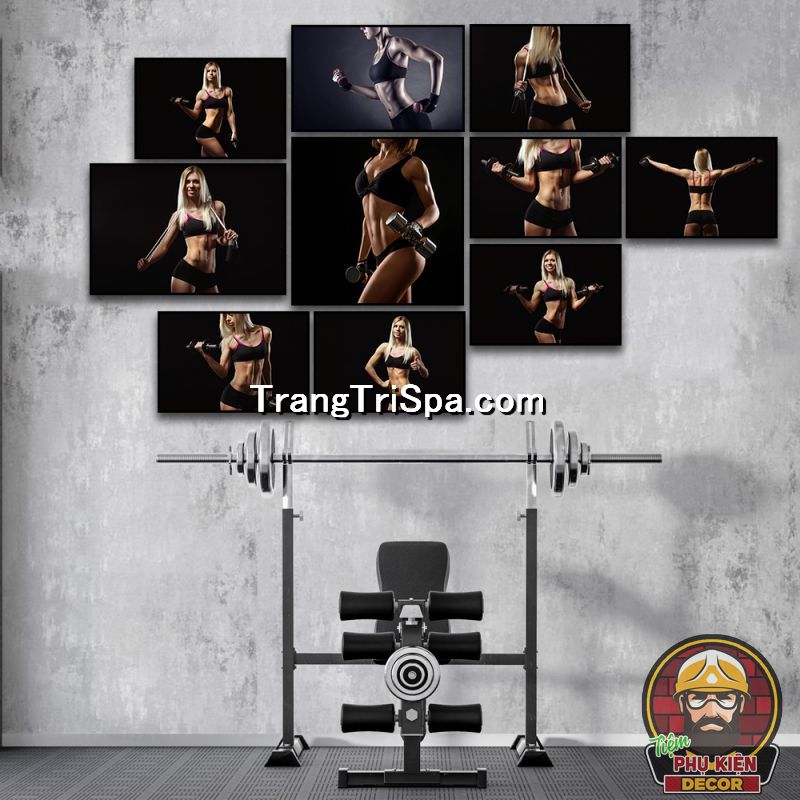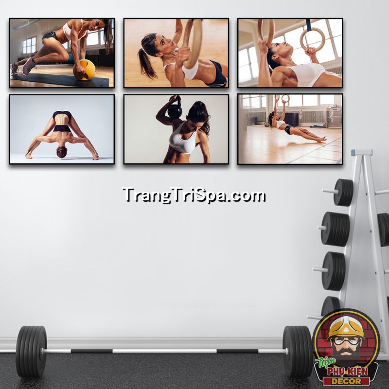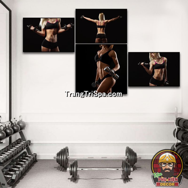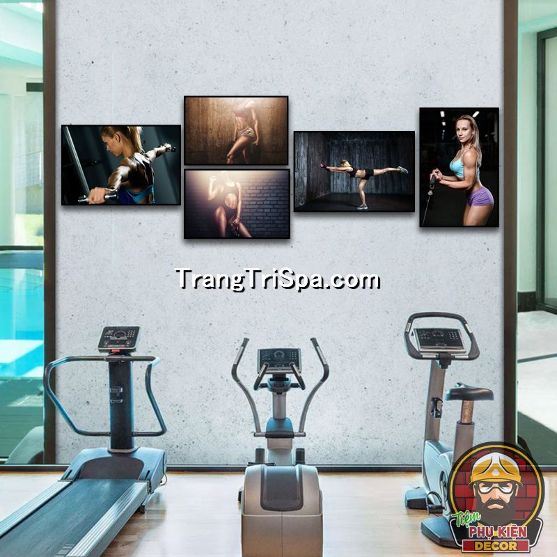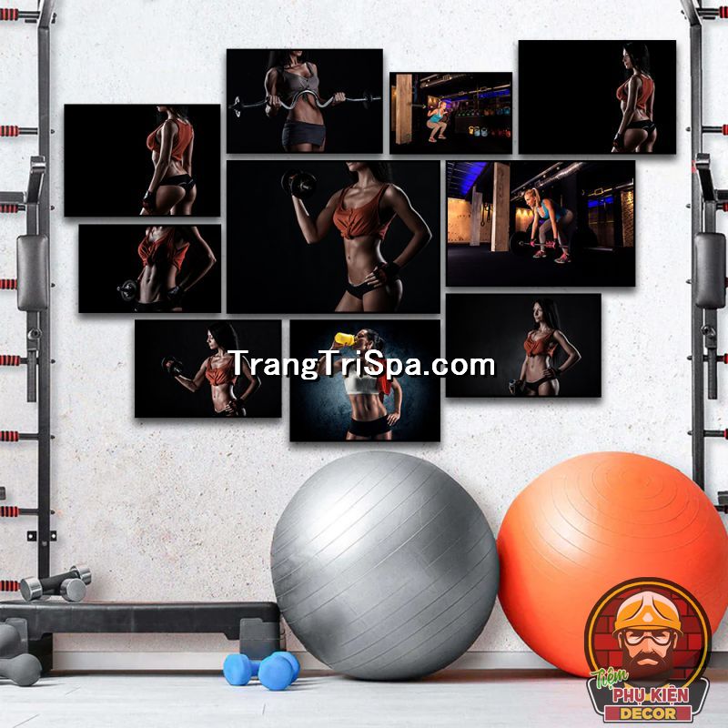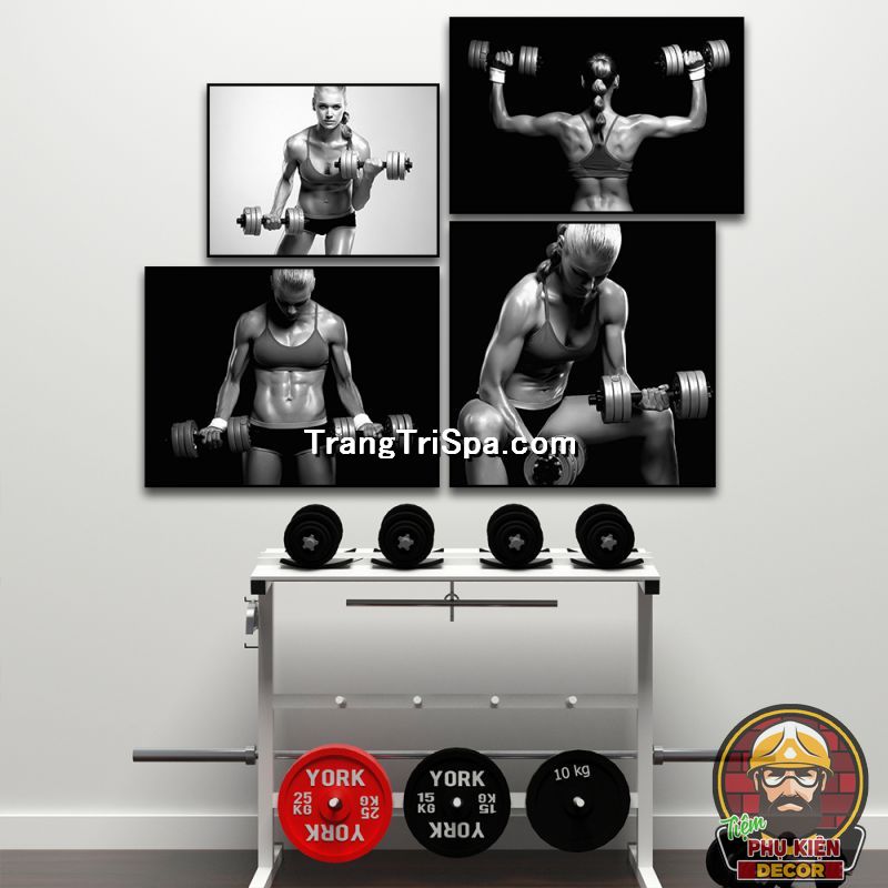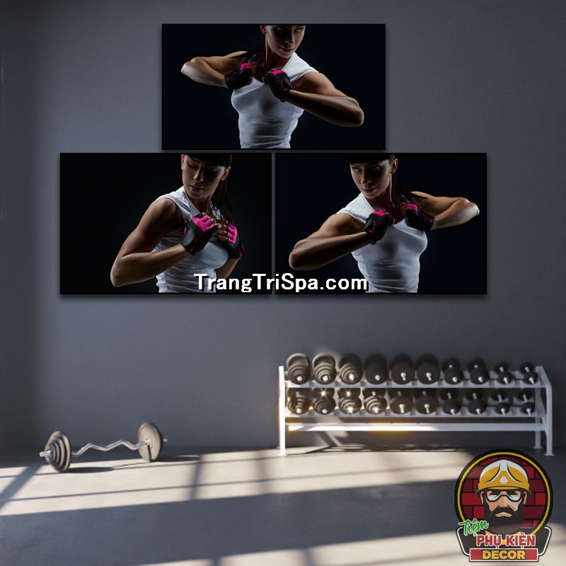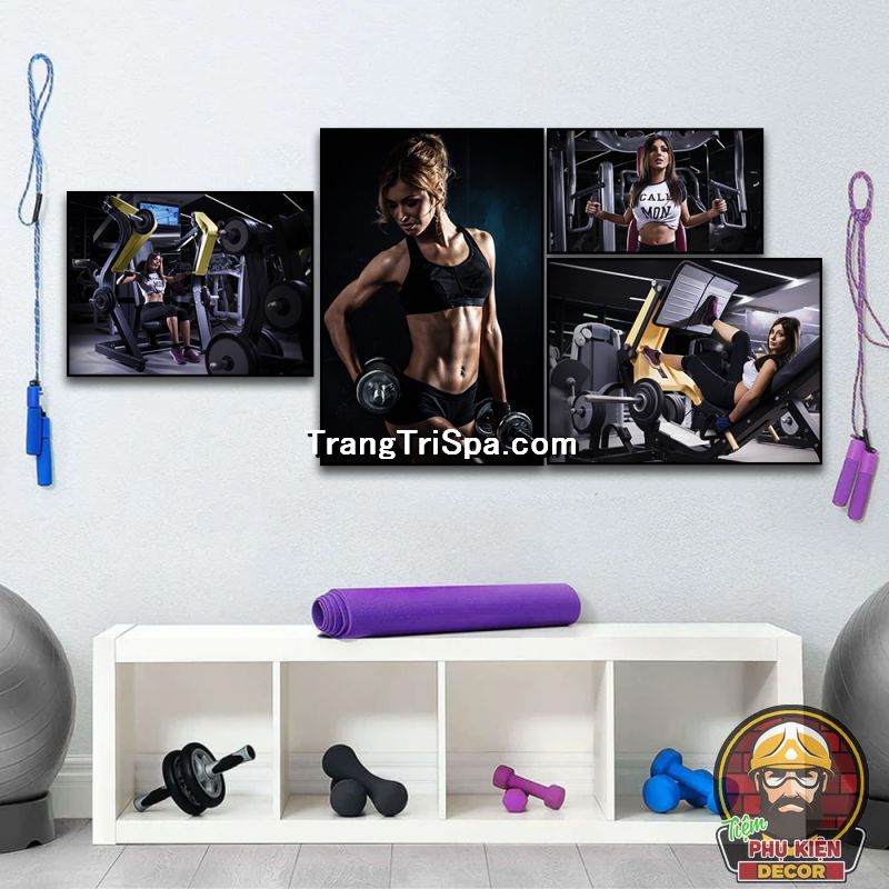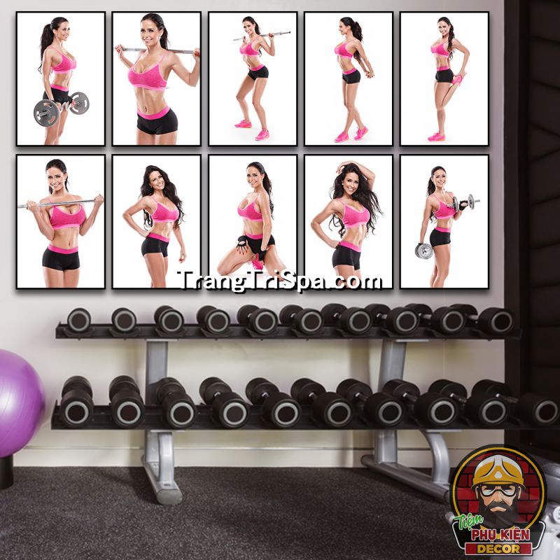Lựa chọn những mẫu tranh treo tường trang trí phòng Gym nữ với những hình ảnh các gymer tập luyện chăm chỉ mang ý nghĩ sẽ thu hút và kích thích động lực tập gym, thể hình để có 3 vòng săn chắc như các gymer.