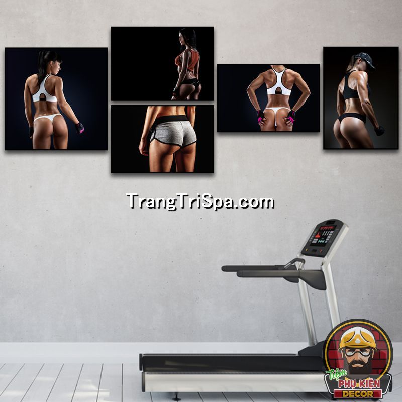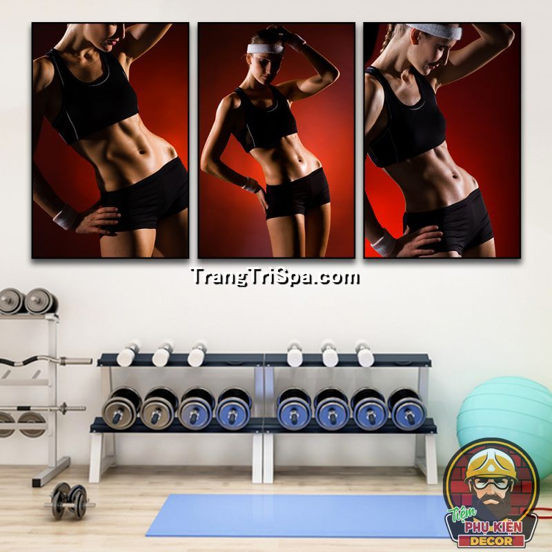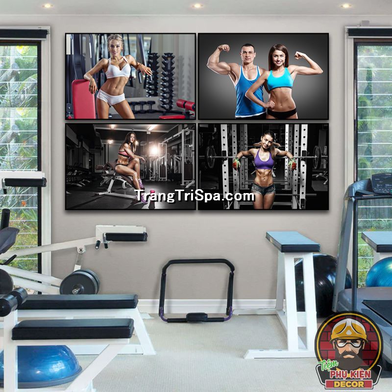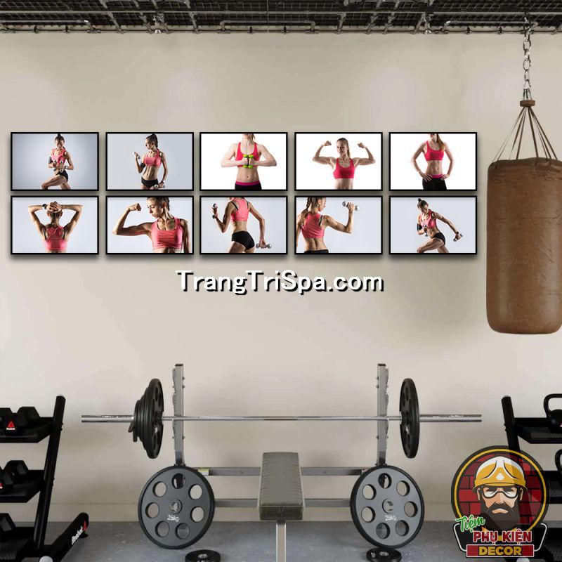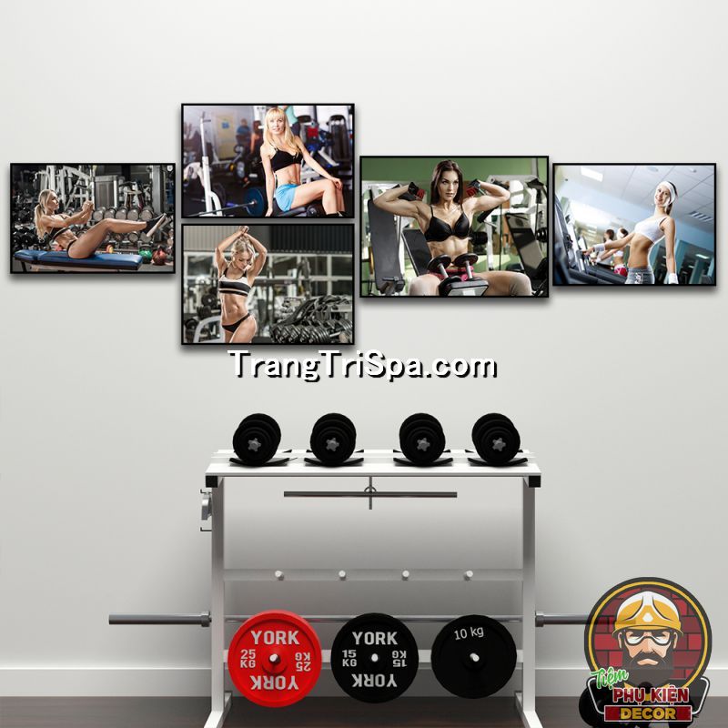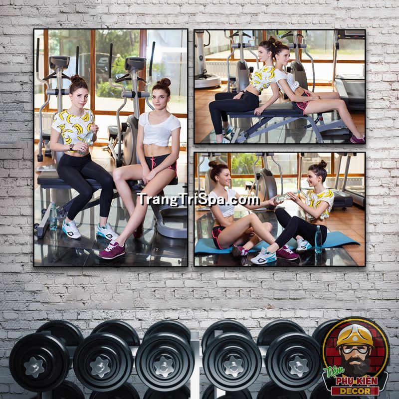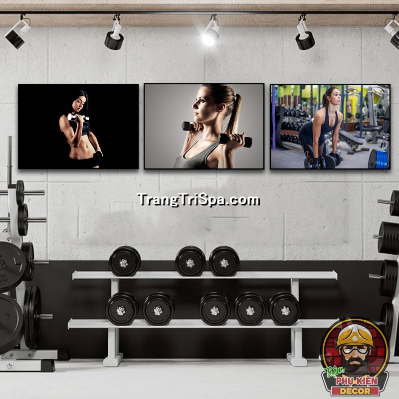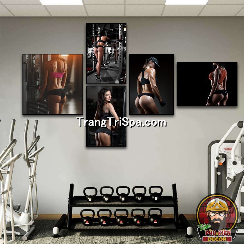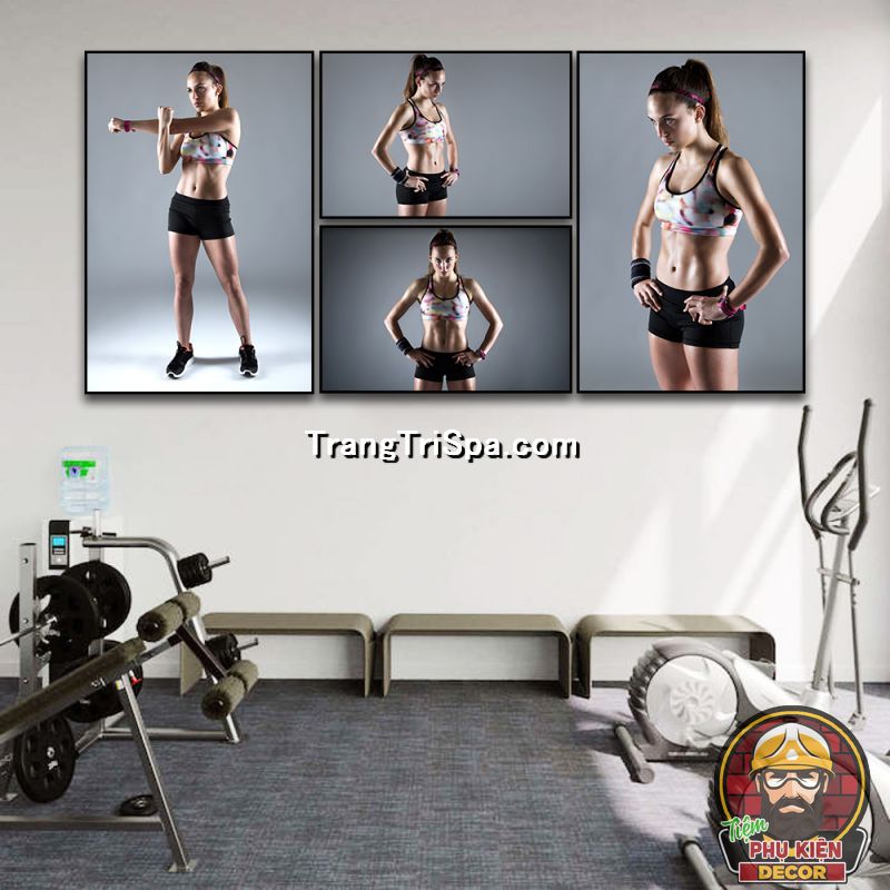 Lựa chọn những mẫu tranh treo tường trang trí phòng Gym nữ với những hình ảnh các gymer tập luyện chăm chỉ mang ý nghĩ sẽ thu hút và kích thích động lực tập gym, thể hình để có 3 vòng săn chắc như các gymer.