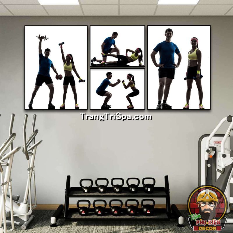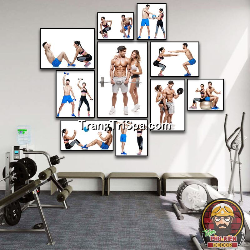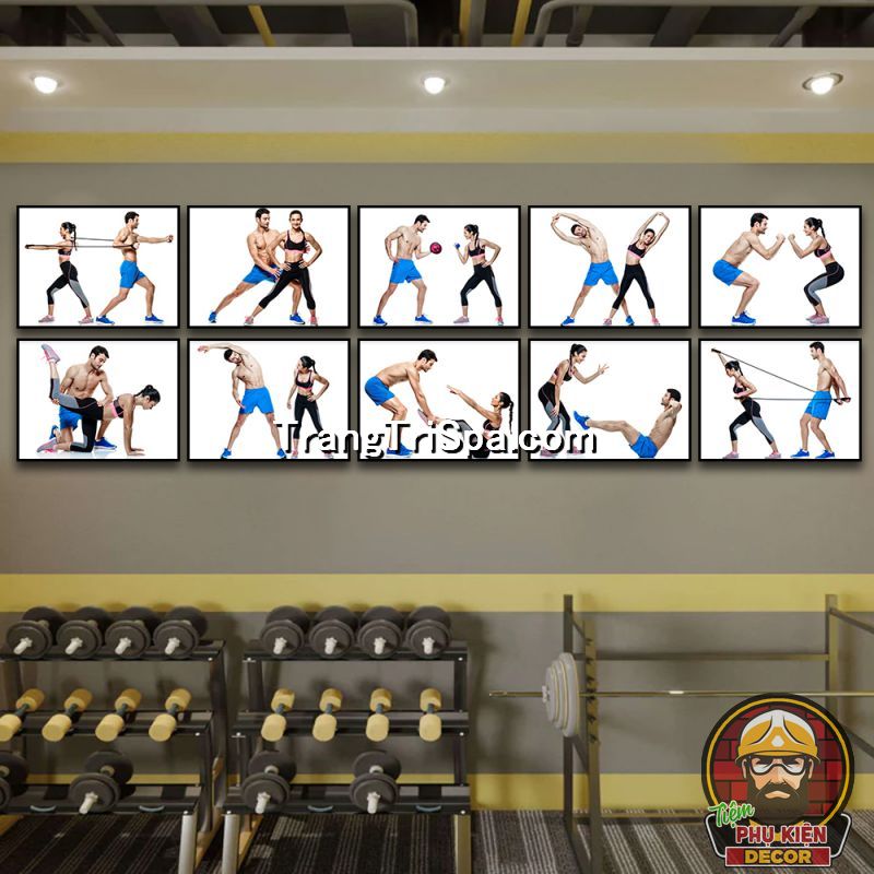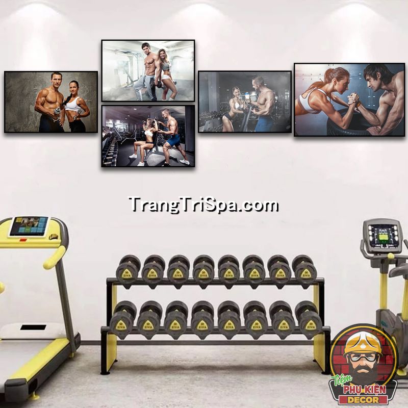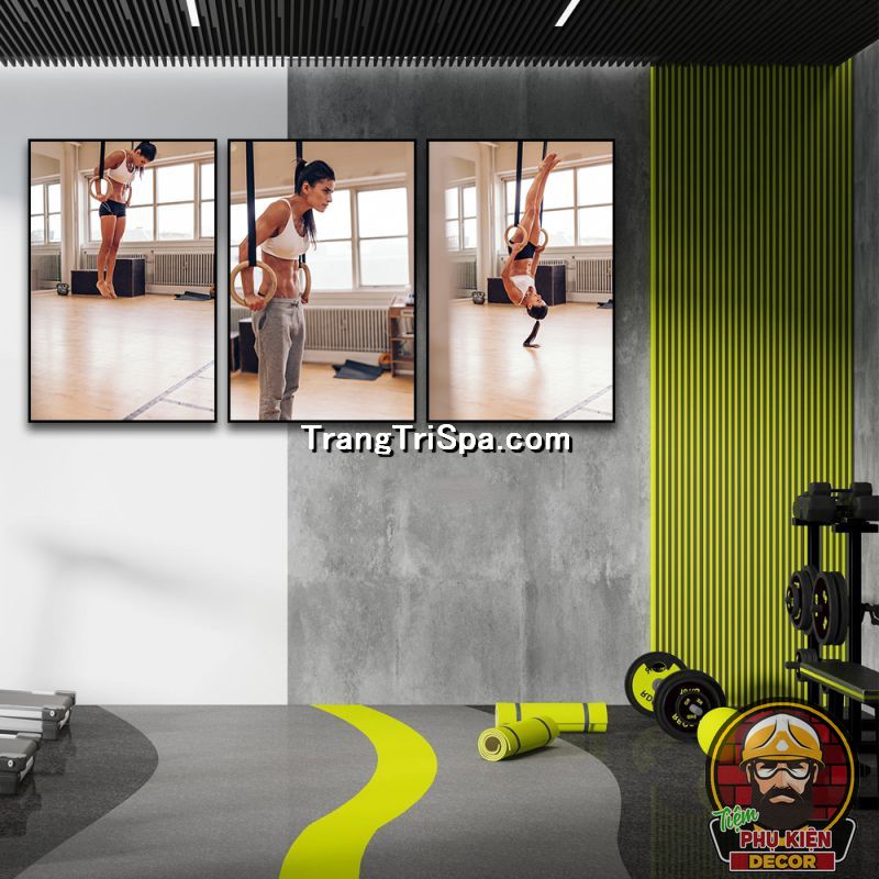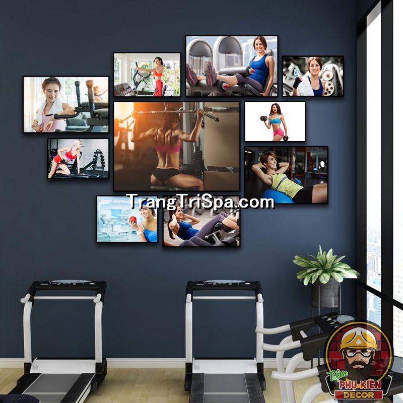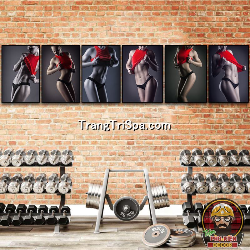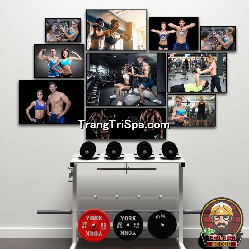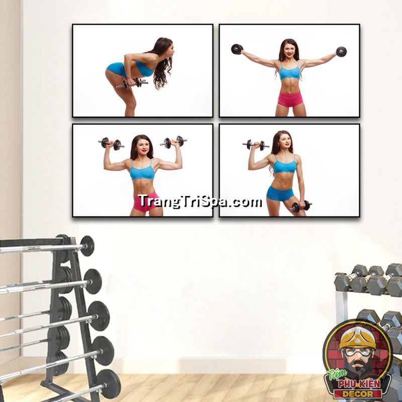 Lựa chọn những mẫu tranh treo tường trang trí phòng Gym nữ với những hình ảnh các gymer tập luyện chăm chỉ mang ý nghĩ sẽ thu hút và kích thích động lực tập gym, thể hình để có 3 vòng săn chắc như các gymer.
